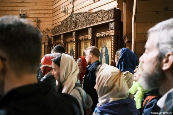 Программа поездки открылась ранней литургией в храме св. благ. кн. Александра Невского при МГИМО. По окончании богослужения был взят курс на север Подмосковья. В окрестностях Дмитрова, в поселке Деденёво, группа студентов и преподавателей МГИМО посетила Спасо-Влахернский женский монастырь.